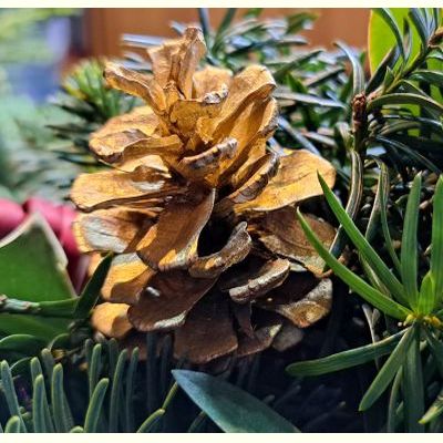 Aangevuld met blad uit de natuur.